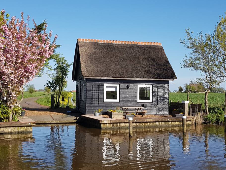 Huisje aan het water snoekenbocht in Friesland aan het ...