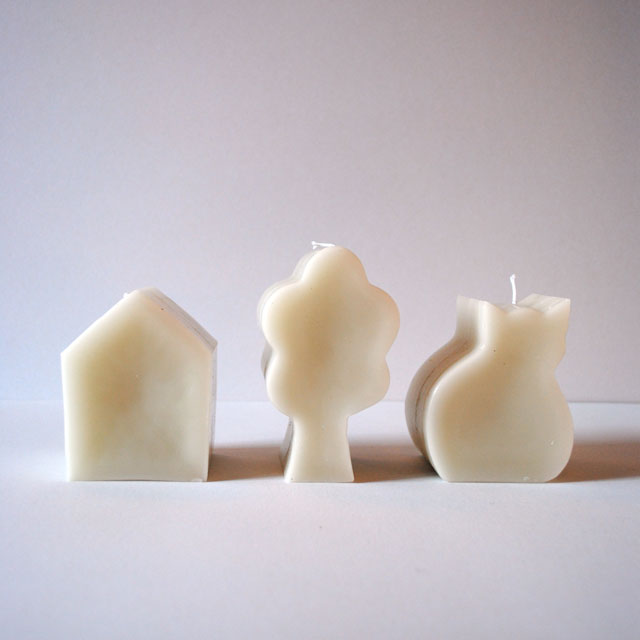 Weer eens wat anders, kaarsen met huisje boompje beestje ...
