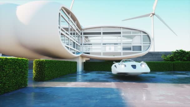 Huis van de toekomst. Futuristische vliegende auto met ...